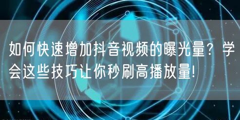 总之,要想快速增加抖音视频的曝光量,需要综合运用以上技巧。通过精心策划内容、优化标题和封面、参与热门挑战和活动、互动营销、合理利用付费推广以及多渠道宣传等方式,让你的视频轻松获得高播放量,成为抖音热门达人!