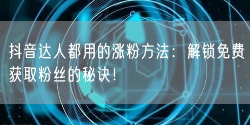 以上就是抖音达人都用的涨粉方法。要想在抖音上免费获取粉丝,需要注重内容质量,保持活跃度,巧妙运用各种功能,注重个人品牌建设。希望这些秘诀能帮助你在抖音平台上迅速扩大影响力,实现抖音营销目标。